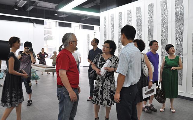7月2日,康宁老师在成都市了了艺术传播机构3号馆成功举办“刀木之音”原木木刻作品个展。在下午的访谈中,康宁老师向笔者一再强调“艺术家善于追求‘极端’、‘片面’甚至‘偏执’的个人化表现,艺术没有绝对的完美”。康宁的天性仿佛其版画透出的“刀味”,亦如鲁迅先生的文学笔调,这种“刀味”、“笔调”的黑白质地,从来都是木刻性的,正合于他们各自的禀赋:简洁、犀利,在平面范围内追求透骨的杀气和流畅的纵深感。