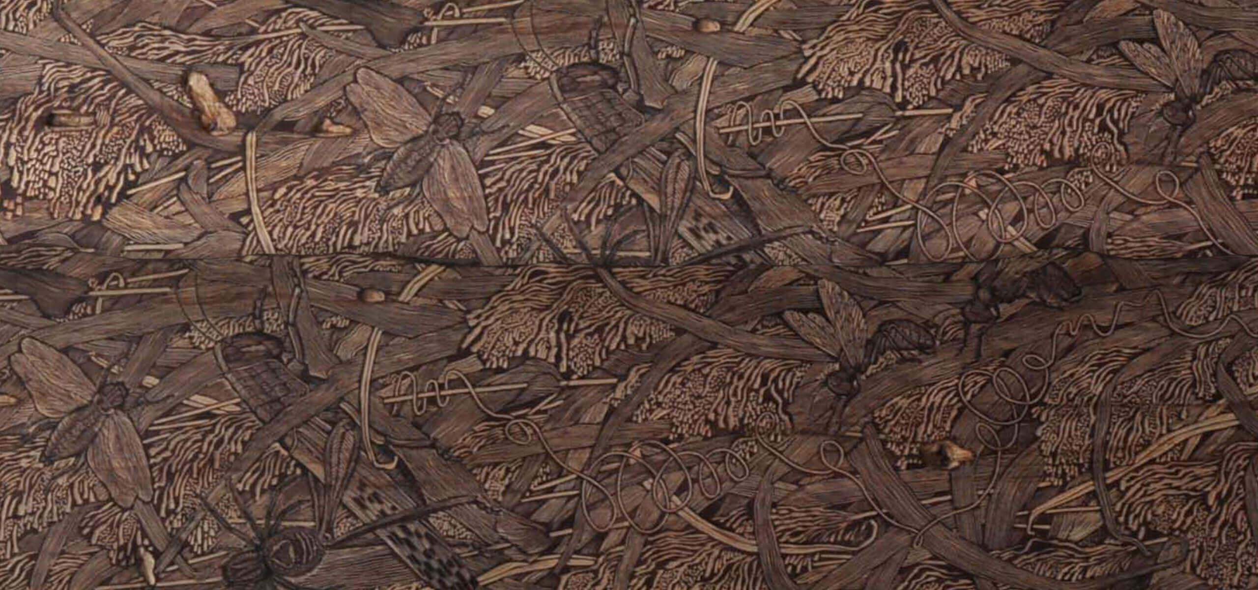 本雅明在《机械复制时代的艺术作品》一文中说,即使是最完美的复制也少了一样东西,那就是艺术作品的“此时此地”,也就是独一无二地现身于它所在之地。总的说来,机械复制时代,艺术作品被触及的就是它的“灵光”。康宁的原木木刻创作有其自身的历史性,它不同于版画创作的机械复制,而是对机械复制时代的高调反叛。这就是鲁迅先生所谓的“创作木刻”,以刀代笔,不模仿,不复刻,作者操刀向木,直刻下去,它需要艺术家亲自动手,手工推移创作伴随身体的位移,它更是作为一种艺术劳动而存在,劳动可能不重要,重要的在于艺术性与身体性的参与。