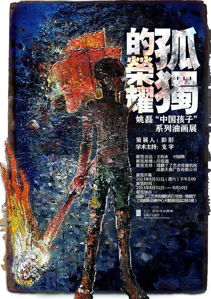“孤独的荣耀:姚磊‘中国孩子’系列油画展”定于2013年8月31日(周六)15时在成都了了.艺术传播机构三号馆开幕。本次展览由四川大学艺术学院彭肜教授策划,西南交通大学艺术与传播学院支宇教授担任学术主持。了了.艺术传播机构无偿提供展场,作为一项艺术公益,以期支持青年艺术家对艺术的虔诚。作为新锐青年艺术家姚磊的首次个展,展览将展出他研究生毕业至今三年内的20余件系列油画作品,展览将持续到9月10日。