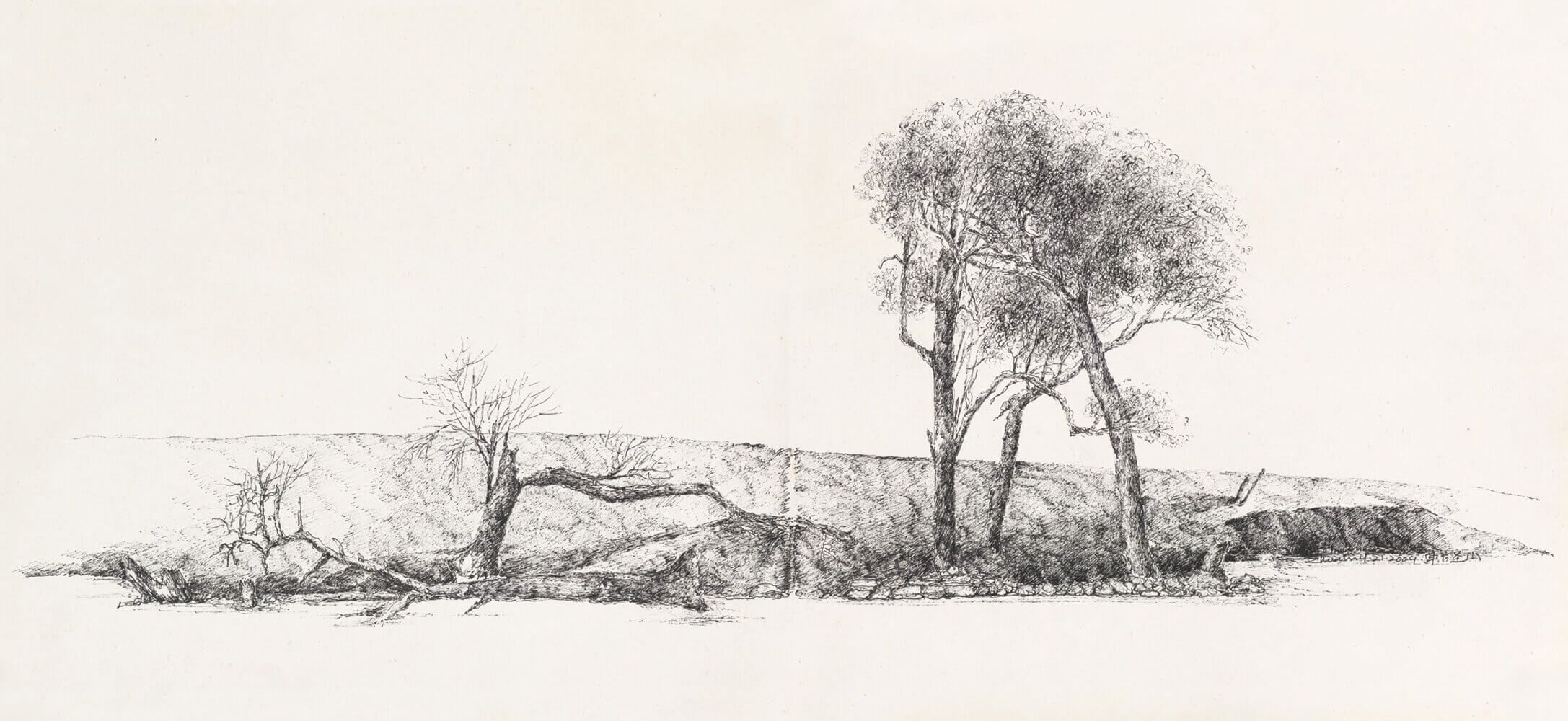 与当代生活的艳丽与脂粉气形成强烈对比,庄子的钢笔画作品以一系列的黑白场景为我们构筑了一个似真非真的黑白之梦——从“花间集”一系列油画作品对“传统与现代”、“现实与虚构”、“形式与意义”等多重内涵的揉合中毅然出走,庄子的钢笔画作品将关注视点从自我主观意识的探索转向了更边缘的自然和环境:远方的山、近处的花、目之所及司空见惯的树木,还有那些正在大地上消逝的房屋与村庄……庄子画面语言中特有的诗意之美一如既往。