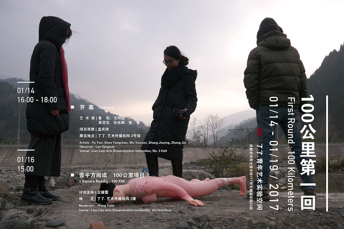 我们以成都天府广场为圆⼼直线距离100公里为半径,迫使艺术家在四川盆地的盆底与盆壁间的分界地带搁置过往经验,面对一个巨大的俄罗斯转盘把自己抛向未知。《100公里》的第一回对应冈萨雷斯.托雷斯作品《⽆题(完美爱⼈)》中左边钟表分针所指作为目的地, 艺术家在规定的时间规定的地点(芦山县大川镇)放弃冗余的思考回到双手(Do it),像编织毛衣那样一针一线的行进,让身体的一部分走向喜悦与颤栗。