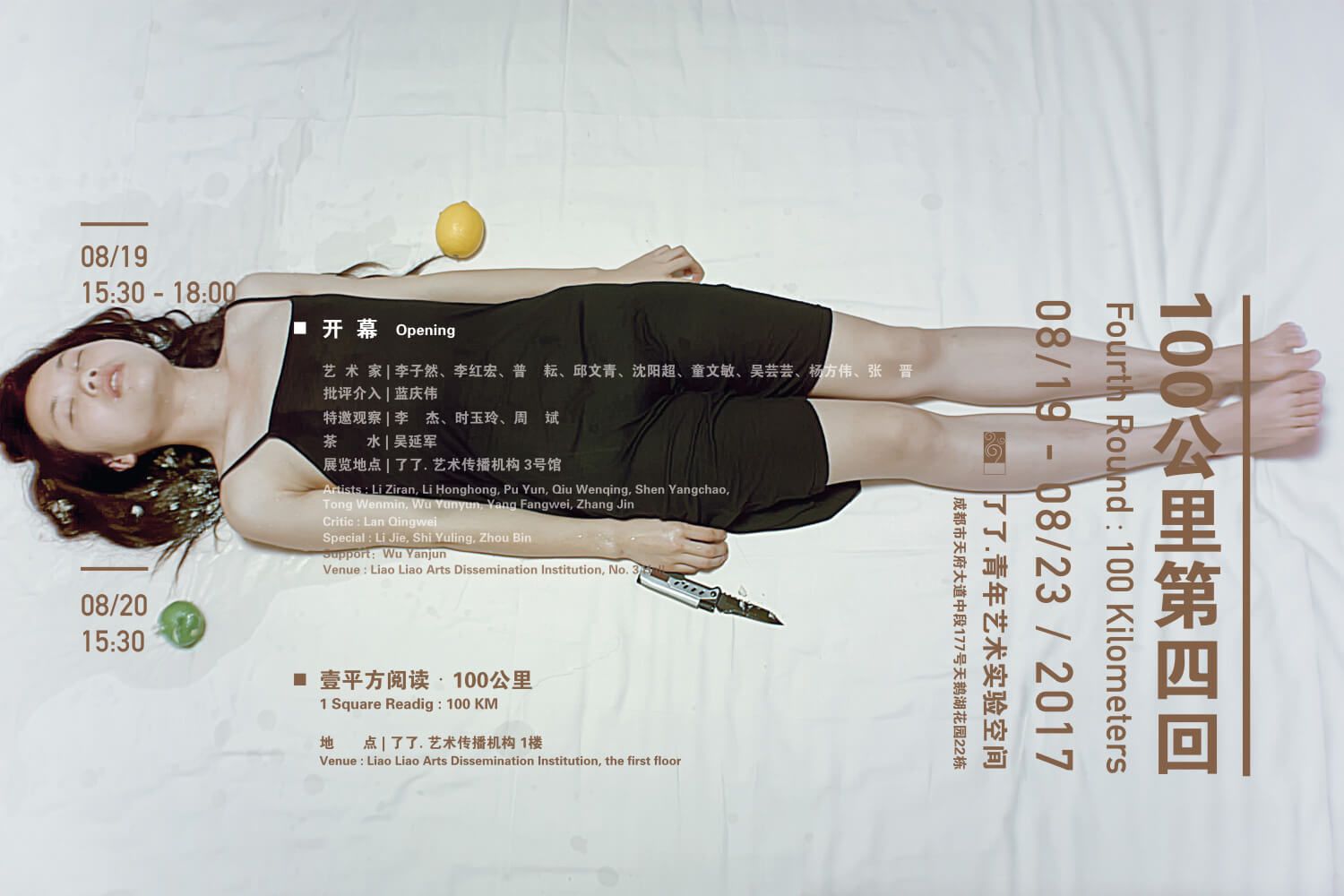 1988年,阿布拉莫维奇与乌雷分别从长城东西两头出发,徒步走向对方。2017年,100公里的第四回中,来自重庆与成都的艺术家在两个城市间的资阳市安岳县龙台镇汇合。安岳有自南梁延续至民国的大量石窟造像,所以,与艺术家们在这里汇合的,还有穿越时空的手艺。