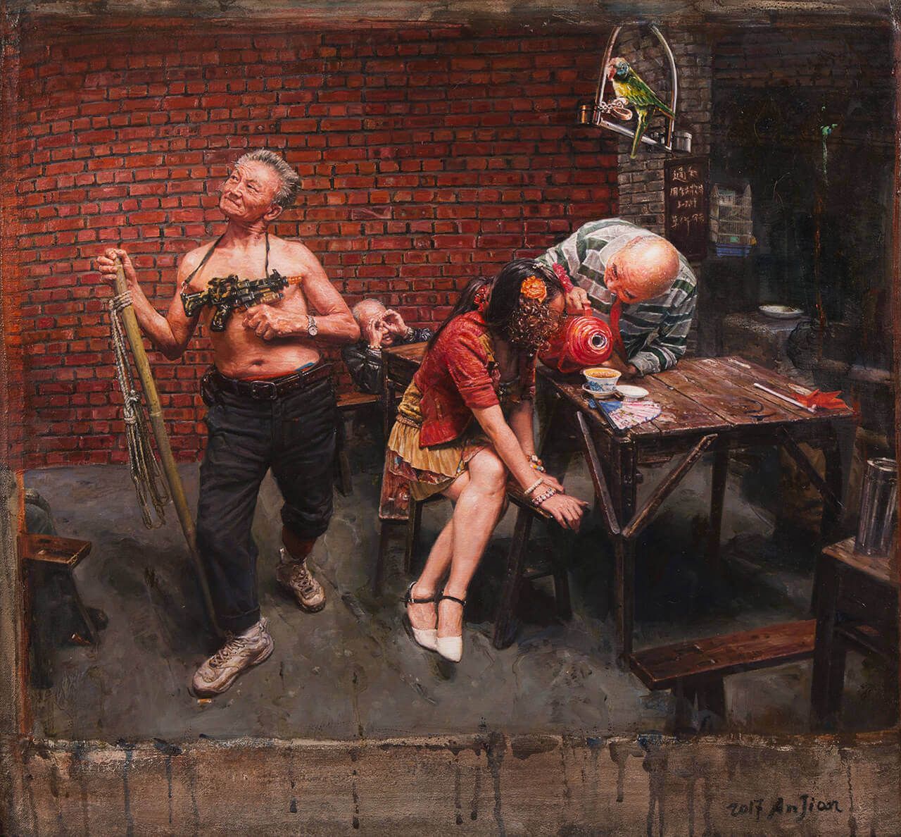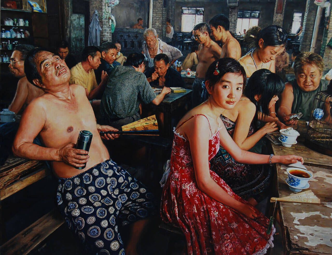 2018年的4月在重庆的展览,将陈安健的作品还原到黄桷坪的人文艺术生态上来看,让大家明白《茶馆系列》作品是从什么土壤上生长出来的。这个展览产生了很多方面的影响,一百多家媒体的报道,全国各地几十个批评家的评论;来参观的嘉宾主要集中在媒体、批评家,还有陈安健的同学和朋友;2019年“移植”回成都的这次展览,重点是在于向陈安健的收藏群体作成果汇报。
