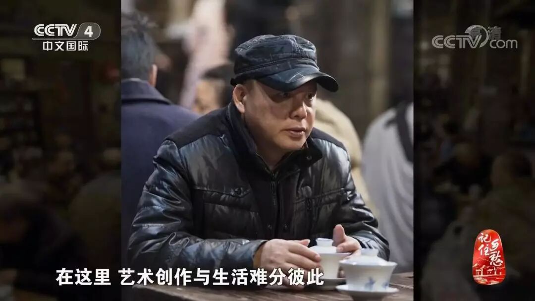 然后,我们在里面看到了一个熟悉的身影——他还挺上镜的,一口标准的重庆话。他是一位著名的艺术家,也是交通茶馆最深情的“茶客”……