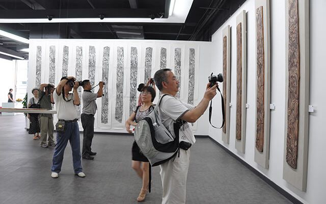 后来,康宁又改变了惯用的方形画幅,以超长的条幅式画作和更为纯粹、精谨的语言入手,继续秉持“木刻究以黑白为正宗”、“以刀代笔”(鲁迅),完成《延续的片段》,步入一个新的境地,体现出他崇尚的“极端”、“偏执”的创作理念。《延续的片段》在这次展览中是以版画形式出现的,尽管没有看到原木木刻,但是高近3米的拓印作品依旧能窥见原木木刻技艺的精湛:艺术家尽量保持原生树木被砍伐、锯开后的自然状态,“木”的材质美成为木刻艺术语言的重要元素。以人们日常的、平淡的甚至无为、无聊的生活状态作为主题,这种状态又不断地被叠加、重复、延续,创作者试图以不断被重复、延续的陈列方式呈现宏大的规模和气势,同时在形式上给人以汉代简牍造型的联想与暗示。说到这一点,汉简残片的形象是康宁老师在面对一排将近三米长的桦木板时联想到的,这种古拙、大气的效果是他多年来的一个梦想,也是艺术家深入思考的结果。