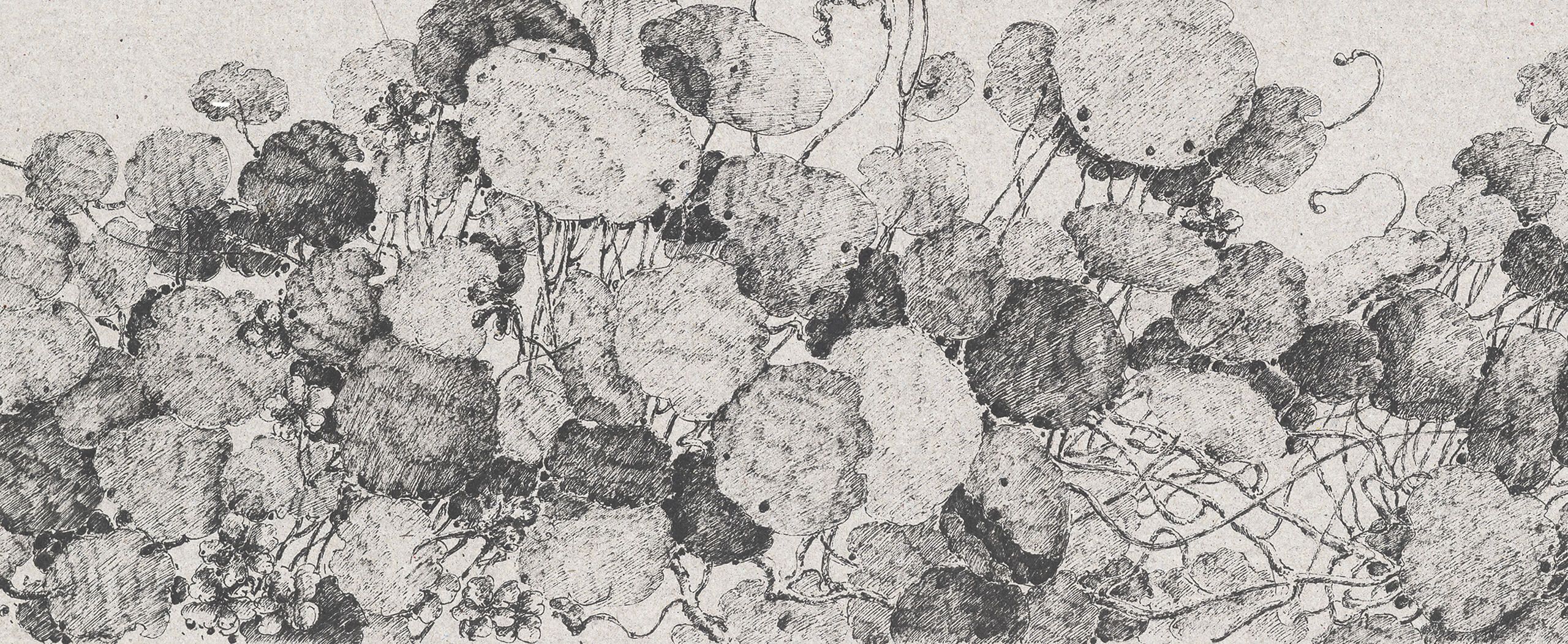 与当代生活的艳丽与脂粉气形成强烈对比,庄子的钢笔画作品以一系列的黑白场景为我们构筑了一个似真非真的黑白之梦——从“花间集”一系列油画作品对“传统与现代”、“现实与虚构”、“形式与意义”等多重内涵的揉合中毅然出走,庄子的钢笔画作品将关注视点从自我主观意识的探索转向了更边缘的自然和环境:远方的山、近处的花、目之所及司空见惯的树木,还有那些正在大地上消逝的房屋与村庄……庄子画面语言中特有的诗意之美一如既往。