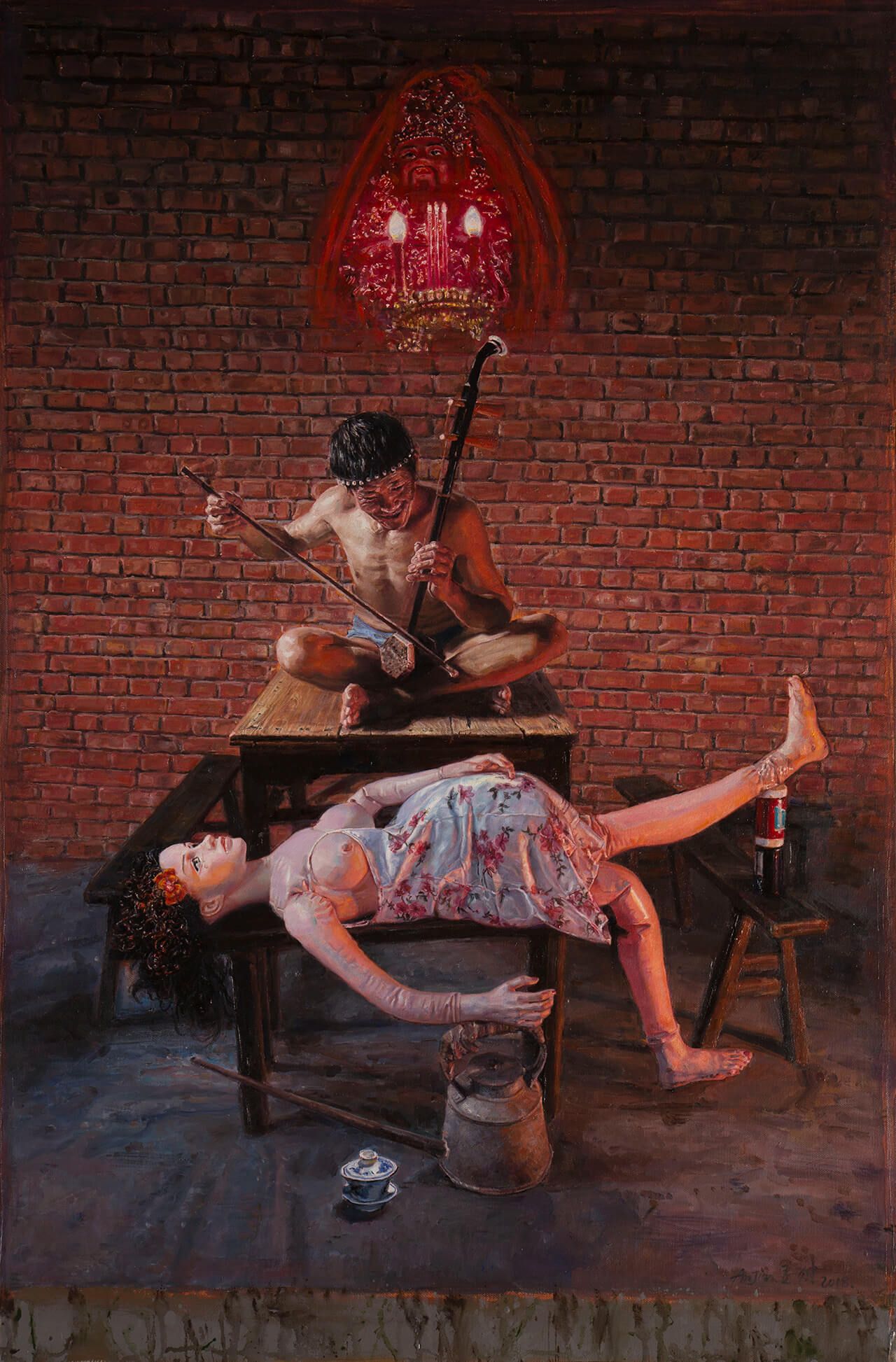 本次汇报展了了作了精心的布置,虽然场面和规模没有去年四月在重庆做的那么公开和盛大,但是在内部细节上依然一点都不敢松懈。画作的呈现不像重庆展览,基本上回顾了艺术家20年的创作历程,这次把大家对《茶馆》关注的重心,放在对将来的期望上,以陈安健先生一到两年最新的作品为主。