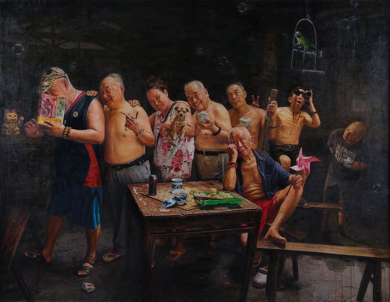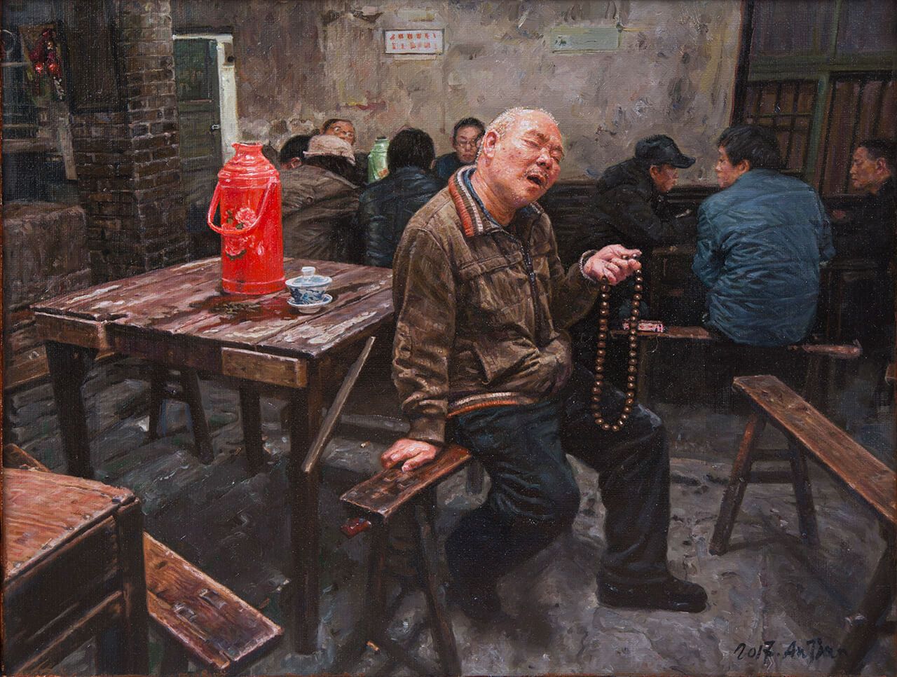 2018年的4月在重庆的展览,将陈安健的作品还原到黄桷坪的人文艺术生态上来看,让大家明白《茶馆系列》作品是从什么土壤上生长出来的。这个展览产生了很多方面的影响,一百多家媒体的报道,全国各地几十个批评家的评论;来参观的嘉宾主要集中在媒体、批评家,还有陈安健的同学和朋友;2019年“移植”回成都的这次展览,重点是在于向陈安健的收藏群体作成果汇报。