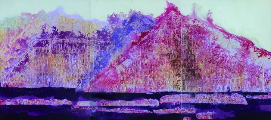 杨光伟《氤氲远岫》·60×240cm·6联·布面油画丹培拉综合材料·2014-2015