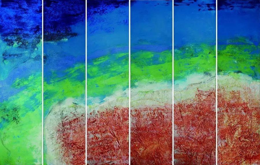 杨光伟《野水》·60×240cm6联·黄麻布面油画丹培拉·2014-2015