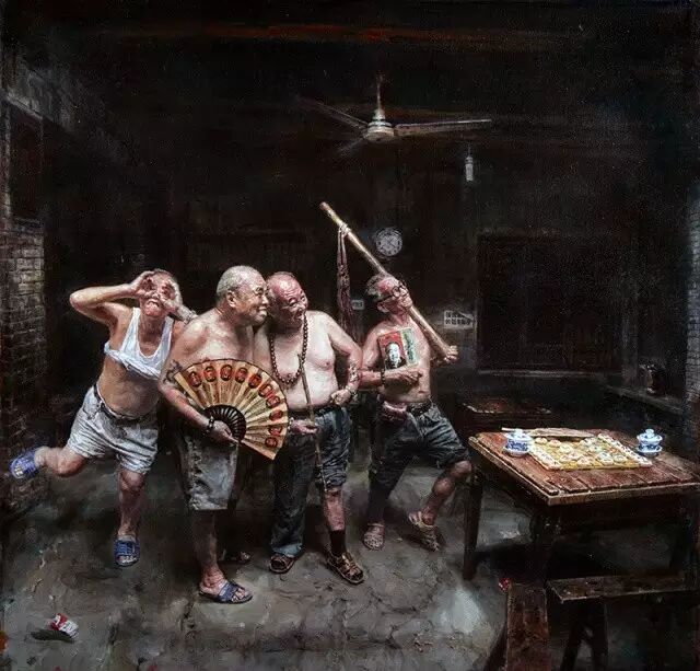 陈安健《茶馆系列-活神仙》61.5×59.5cm2014年布面油画 参展“2016全国艺术硕士美术指导教师优秀作品巡展”